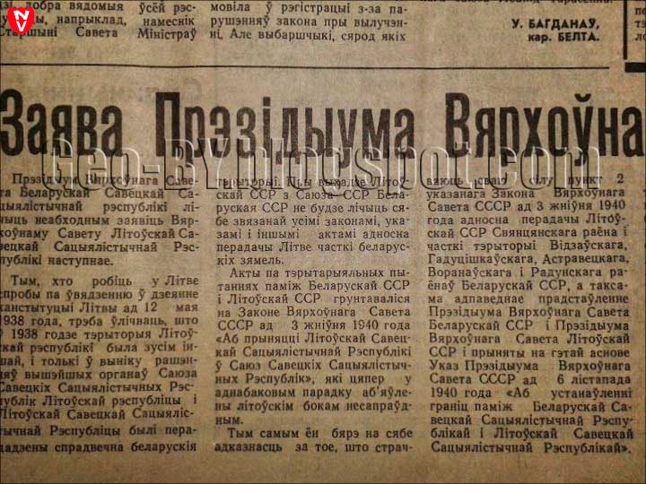В СССР тогда пели песни, что, дескать, «нам чужой земли не надо, но своей мы и пядь не отдадим». Однако без ведома союзной республики из состава БССР была передана иностранному государству огромная советская территория — факт сам по себе уникальный и вопиющий. Отдать часть территории СССР государству, не входившему в состав СССР! Причем, в эти же дни Молотов в газете «Правда» признал, что эти территории этнически беларуские, а не летувисские. Что делало ситуацию вообще совершенно абсурдной.